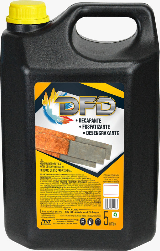 DFD é um Decapante, Fosfatizante, Desengraxante desenvolvido para o tratamento de superfícies metálicas, peças ou chapas de ferro, alumínio, aço, chumbo, cobre, bronze, latão e cádmio.
