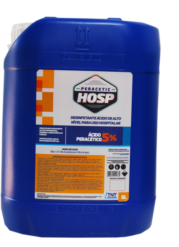 Peracetic HOSP é um desinfetante profissional que elimina fungos e bactérias. Recomendado para superfícies fixas e artigos não críticos em hospitais, postos de saúde, ambulatórios, consultórios odontológicos e clínicas em geral. Pode ser aplicado em pisos, paredes e mobílias, bem como em equipamentos em geral, como endoscópios, tubos corrugados, kits de micronebulização, nebulizadores de oxigênio, aço inox, aço cirúrgico, alumínio, plástico, acrílico e látex.