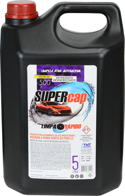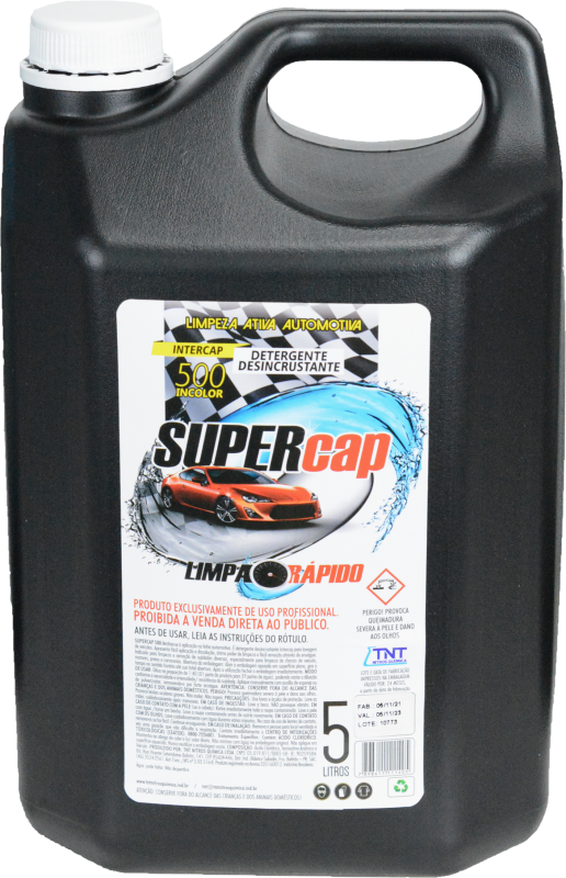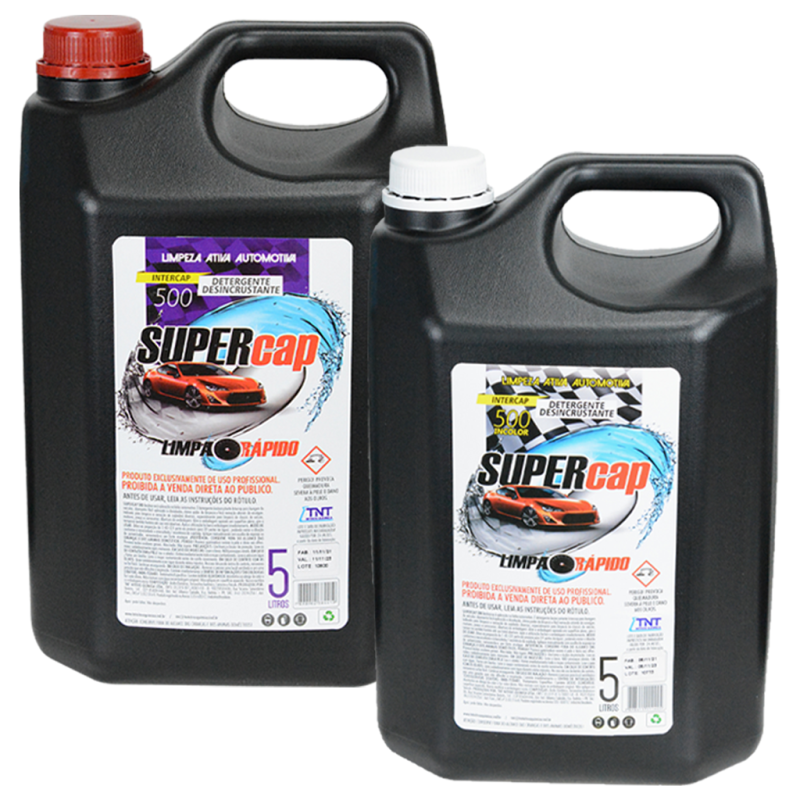 SUPERCAP INTERCAP é um detergente desincrustante super concentrado, para lavagem de veículos e superfícies, de fácil aplicação, alto poder de limpeza que facilita a remoção de sujidades sólidas incrustradas. Desenvolvido especialmente para limpeza de chassis de veículos, motores, pneus e latarias.